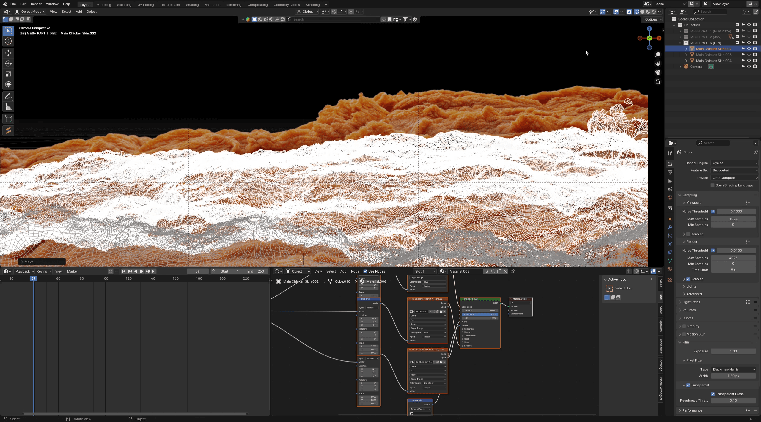 We also incorporated motion capture using Dollars MONO for interactive elements. Chicken textures were scanned using Revopoint and projected onto sculpted meshes to accurately capture organic surface detail while remaining optimized for real-time rendering.